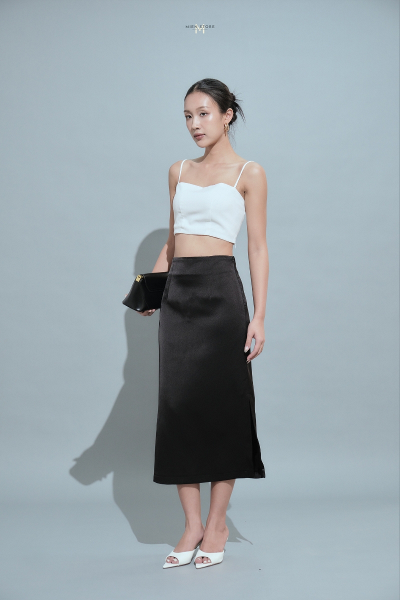 Hướng tới phong cách sang trọng, đơn giản và nhẹ nhàng, Xavia là phiên bản chân váy lụa form suông với thiết kế tối giản cùng đường xẻ tà lệch. Chất liệu Tafta lụa với bề mặt vải có độ bóng tôn lên nét đặc biệt cũng như mang đến thần thái chảnh cho nàng khi mặc.